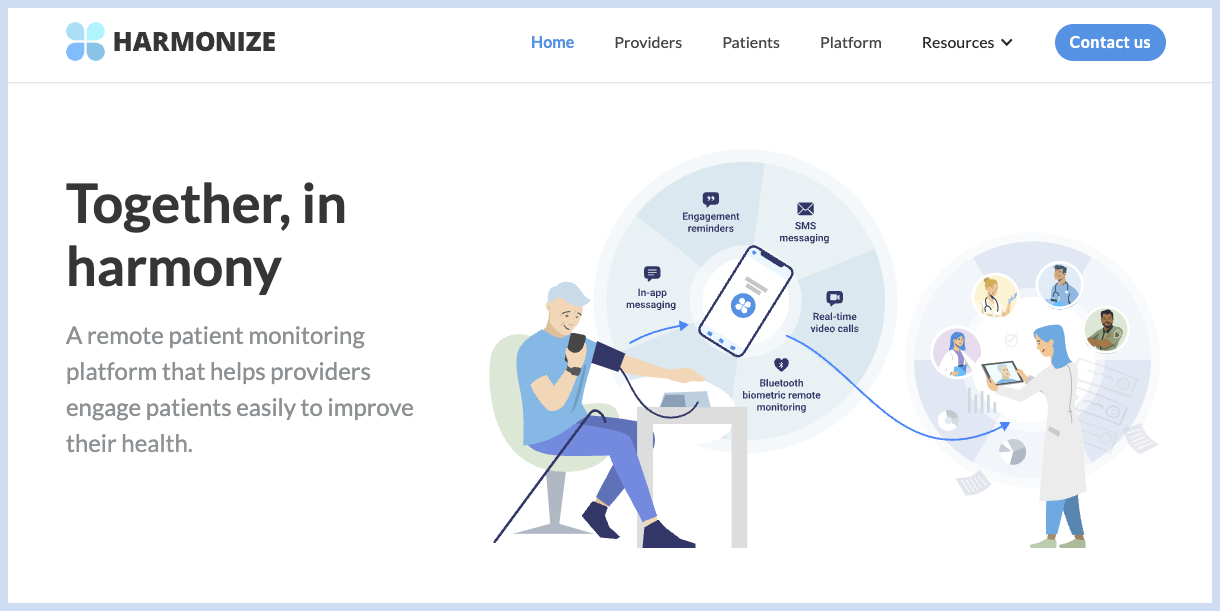 Harmonize Health is an intuitive platform that helps providers maintain the highest patient engagement. Patients can enroll and engage with their treatment protocols with a click-of-a-button.